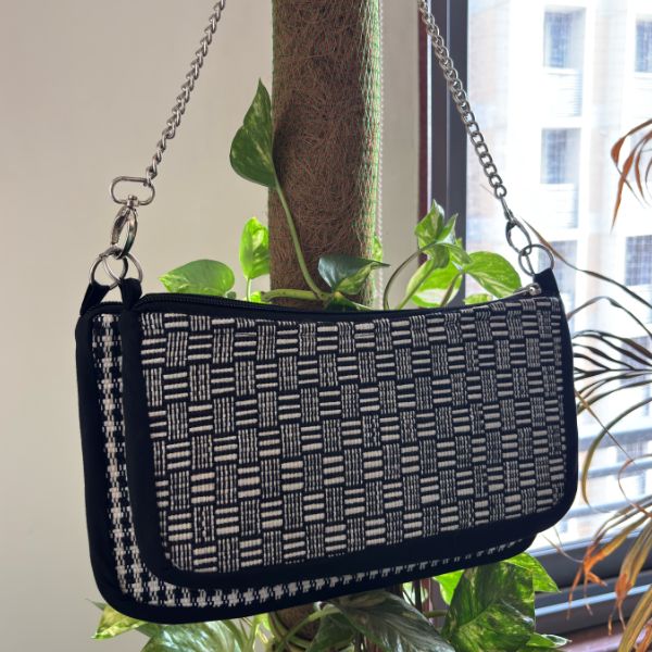 • Material: Handloomed fabric crafted from upcycled plastic wrappers and discarded polythene bags