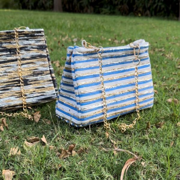 • Material: Handloomed fabric made from upcycled plastic wrappers and discarded polythene bags